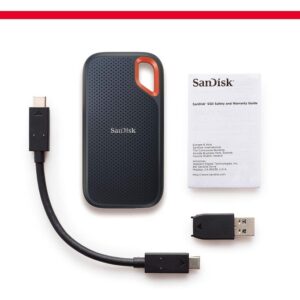 SanDisk 4To Extreme Disque SSD Externe, Portable SSD Des Vitesses Allant Jusqu'à 1050 Mo/s, En Lecture, 1000 Mo/s En écriture, USB-C, Résistance à La Poussière Et à L'eau Classée IP65, Disque SSD NVMe Externe, Noir